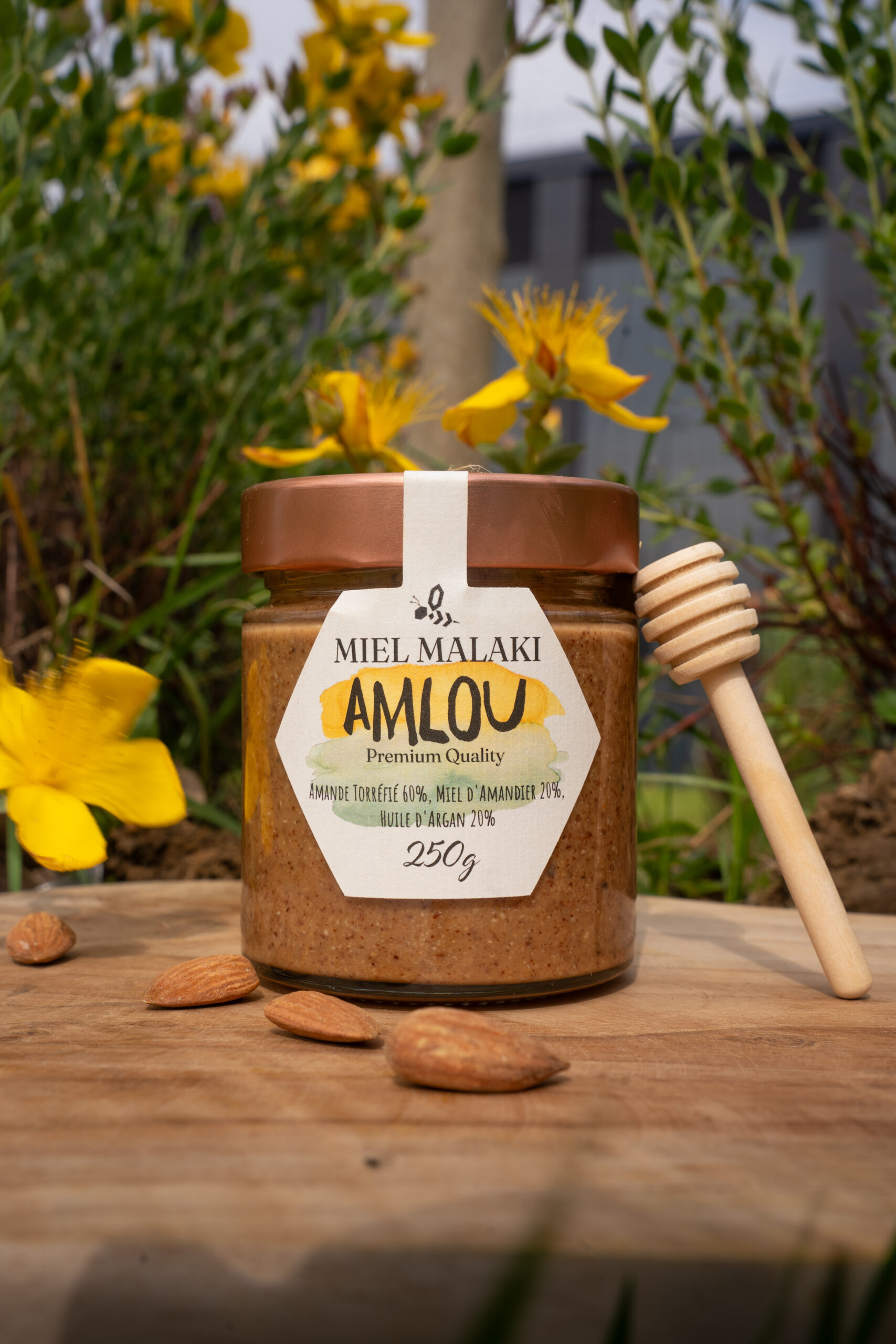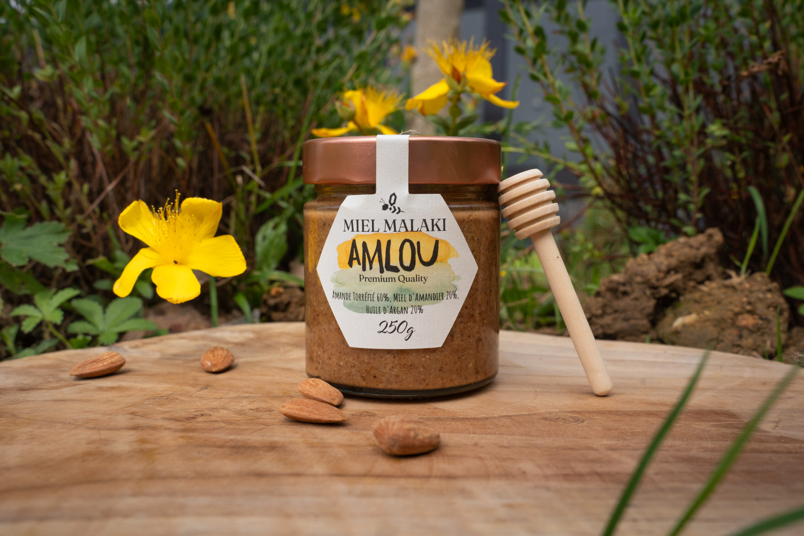 Amandes torréfiées, huile d’argan et miel pur pour une recette authentique